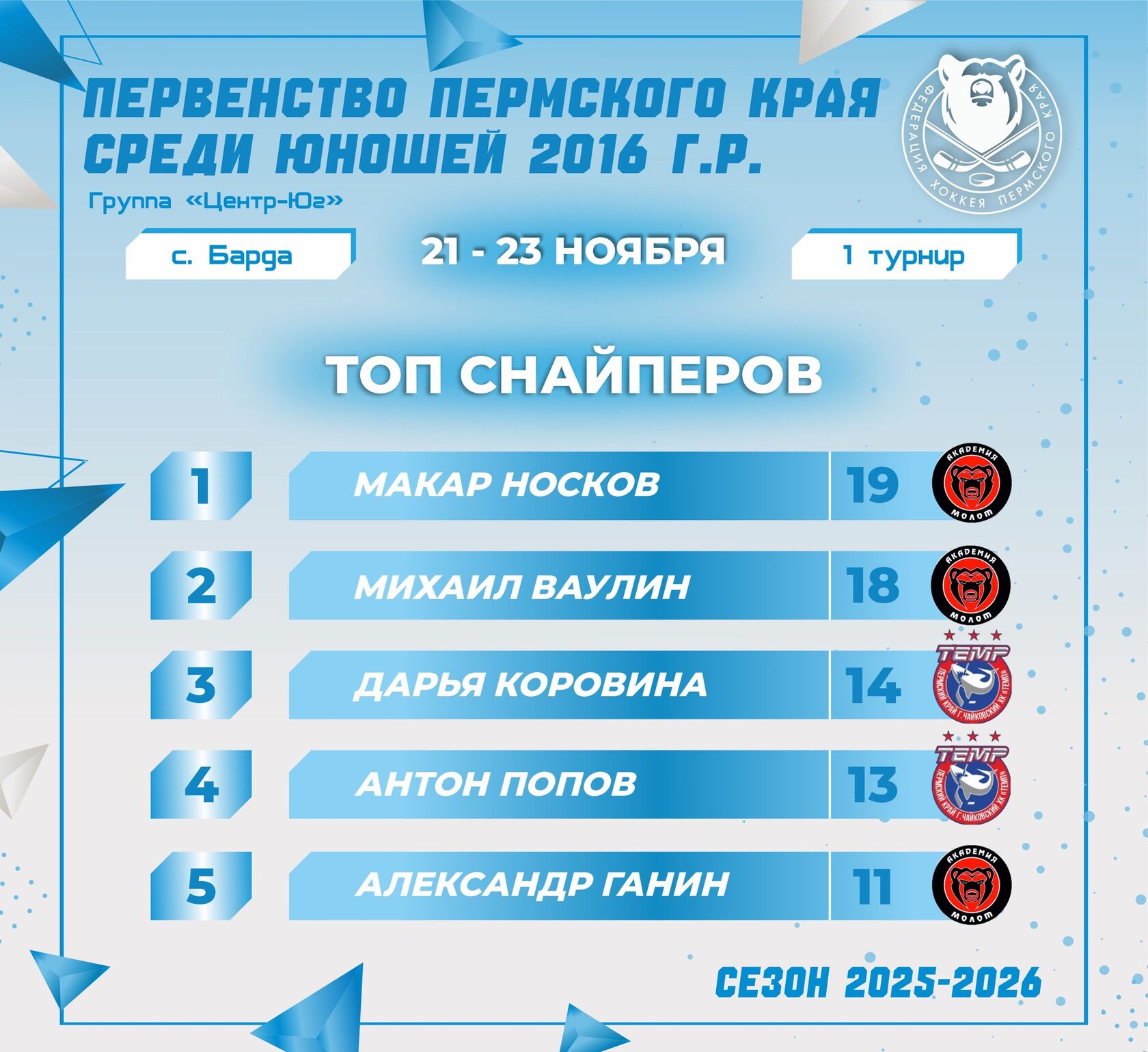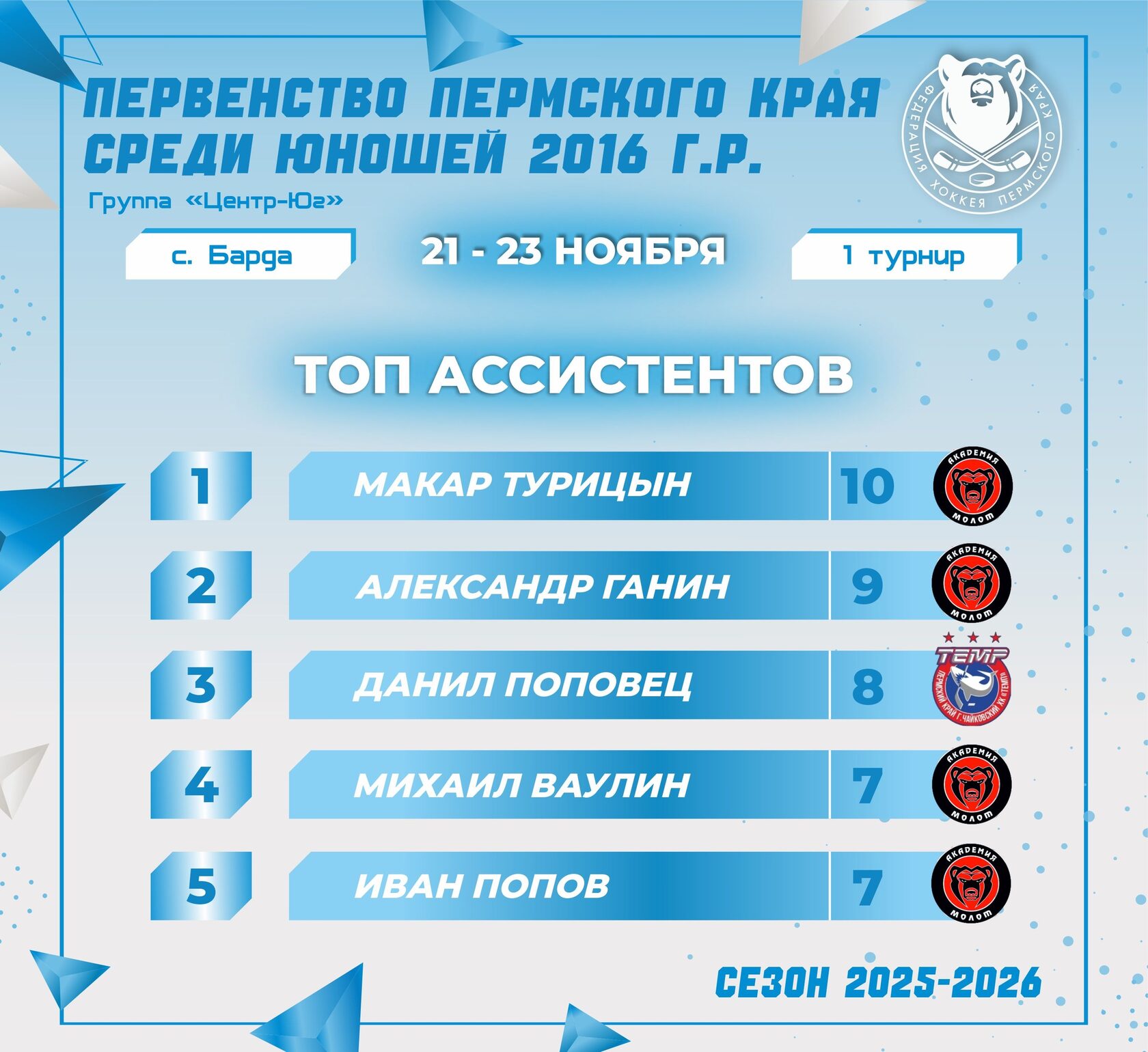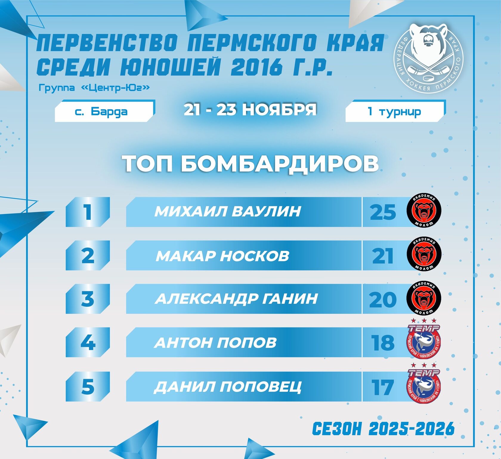 Личная статистика игроков 1 турнира Первенства Пермского края среди юношей 2016 г. р., группа "Центр-Юг" 🔝