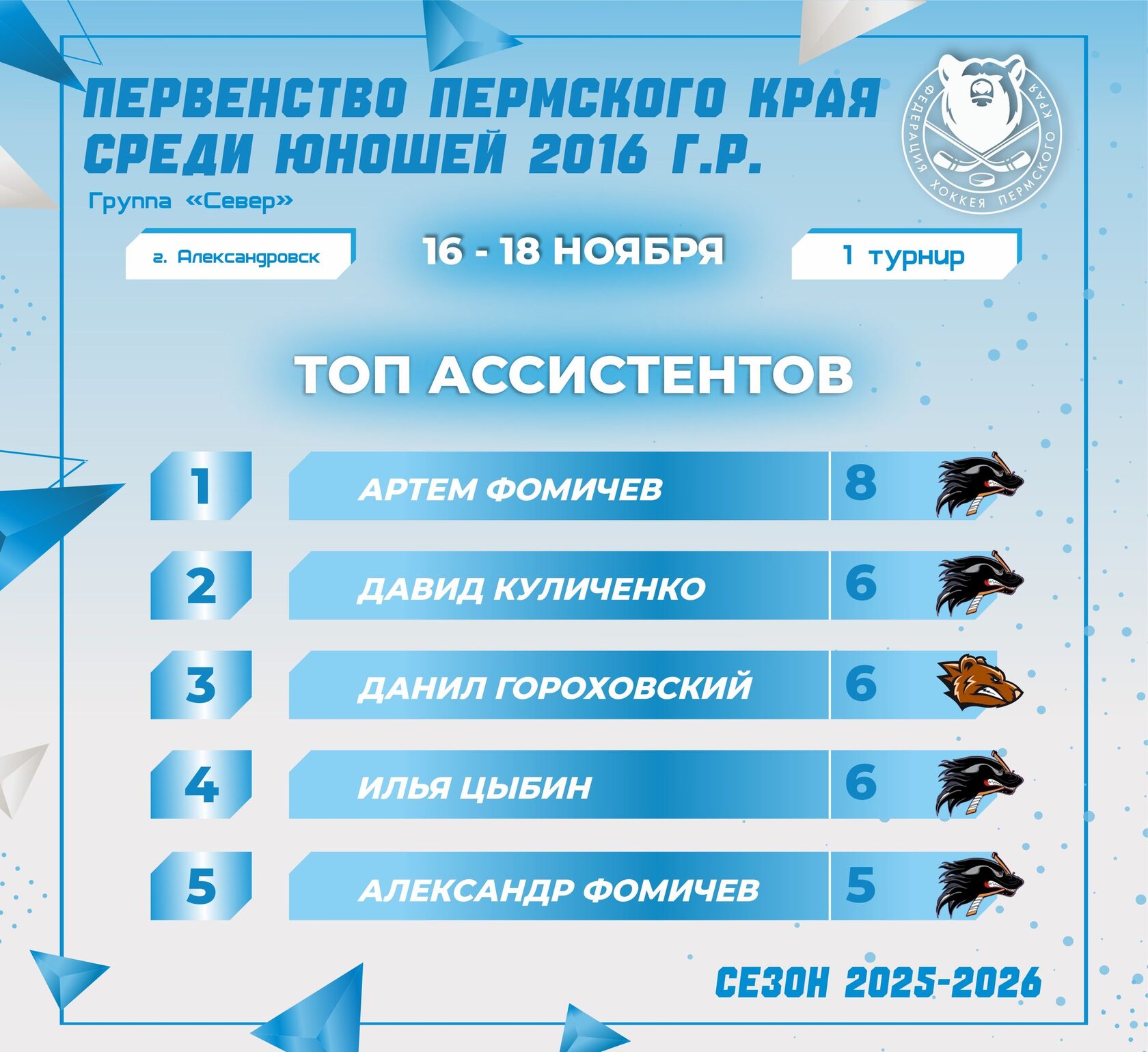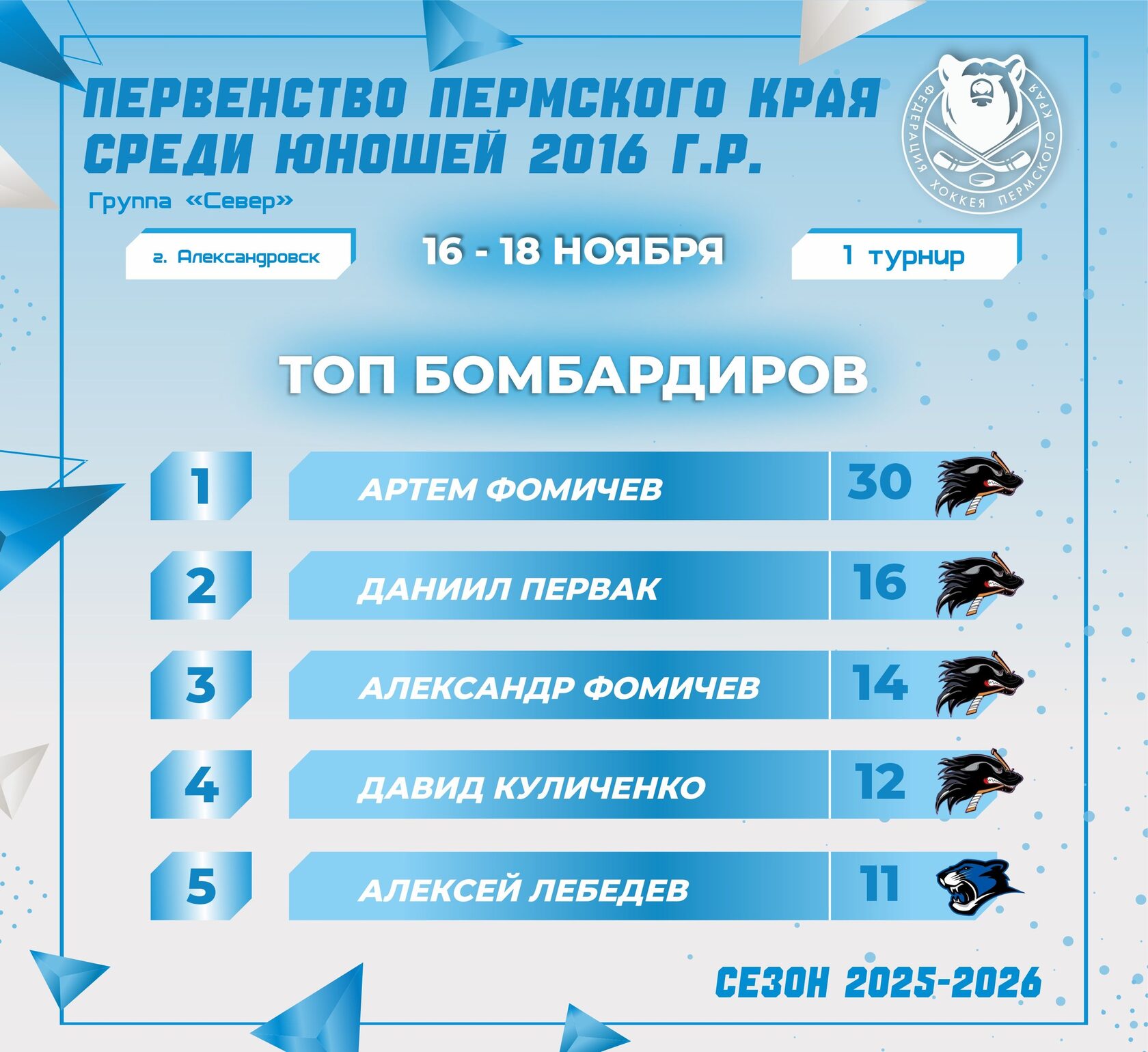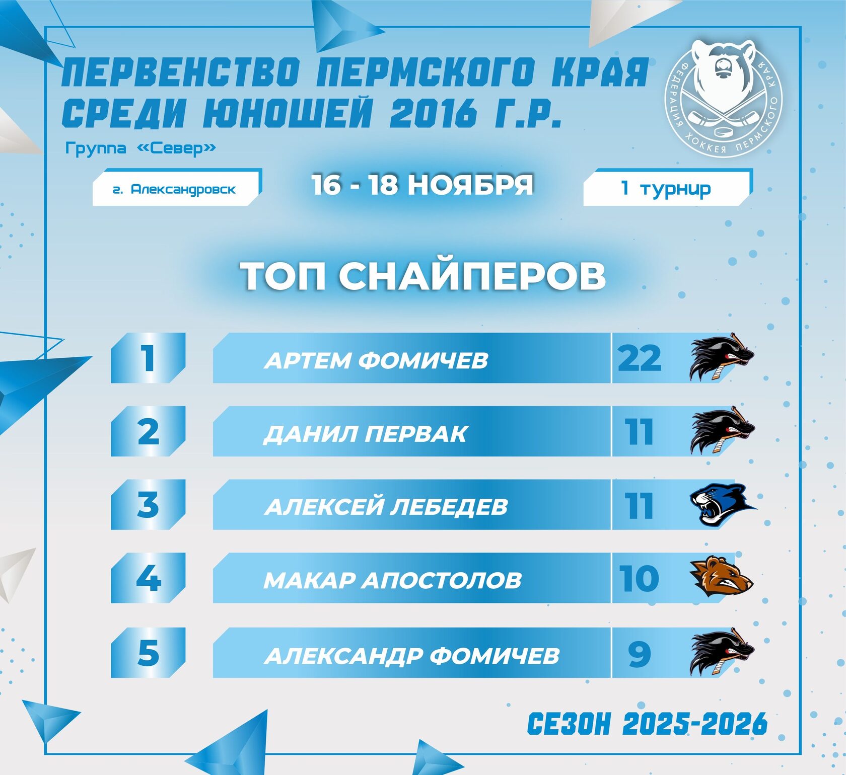 Личная статистика игроков 1 турнира Первенства Пермского края среди юношей 2016 г. р., группа "Север" 🔝